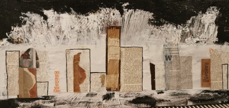 Mixed Materials, 800 x 300 mm, Papier, Holz, Pappe, Acrylfarbe, Leinwand