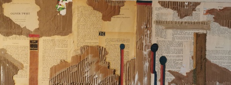 Mixed Materials, 800 x 400 mm, Papier, Holz, Pappe, Acrylfarbe, Leinwand