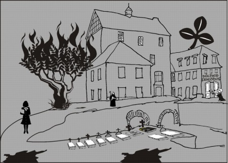 Es sind keine zweihundert Meter von der eigentlichen Dreckburg bis zur Winkelscheune, die Burgherr Anobert von Thul und Texis jeden Morgen zu seinem freigewählten Arbeitsplatz als Bücherfriedhofswärter zurücklegen muss. An diesem speziellen Morgen tappt der Pensionär aber noch ganz schön im Dunkeln herum und zusätzlich noch im Nebel. Eine richtige Novemberwaschküche ist das, er sieht fast seine eigene Hand nicht mehr vor Augen. Vorsichtig und im feuchten Schneckentempo setzt er seine Schritte über den geschotterten Burgvorhof. Er ist früh auf, es ist noch gar nicht richtig hell, aus den umliegenden Wohn- und Arbeitsgebäuden dringt nur die Stille zu ihm durch. Er fühlt unter seinen knirschenden Füßen mehr als seine Augen sehen, wahrscheinlich würde er den Weg auch mit zugebundenen Sehorganen finden. Inzwischen kennt er jeden Schotterstein auf seinem Burggelände, vor mehr als zehn Jahren hat er die Dreckburg erworben und sie restauriert, sich häuslich mit seiner Gemahlin eingerichtet. Sie haben sich beide einen Kindheitstraum erfüllt und die alten Gemäuer zu einem richtigen Kulturzentrum ausgebaut. Damals hatte man sie beide für verrückt erklärt, niemand wollte die alte Burg auch nur geschenkt bekommen. Und als er dann noch seinen Bücherfriedhof in der Winkelscheune ins Leben rief, hielten ihn alle Salzkottener für übergeschnappt, das heißt, bis auf die Leidensgenossen aus seinem Verein, den sie dann gegründet haben, den Salzkottener Bücherfreunde e. V. Der Frühnebel befeuchtet sein Gesicht, eine der vielen Burgkatzen kreuzt seinen kurzen Arbeitsweg, er hätte fast auf sie getreten, fauchend springt sie zur Seite. Er taucht nicht nur aus seinen Gedanken auf sondern auch aus dem Nebel und steht vor der eisenbeschlagenen Scheunentür seines Bücherfriedhofs...