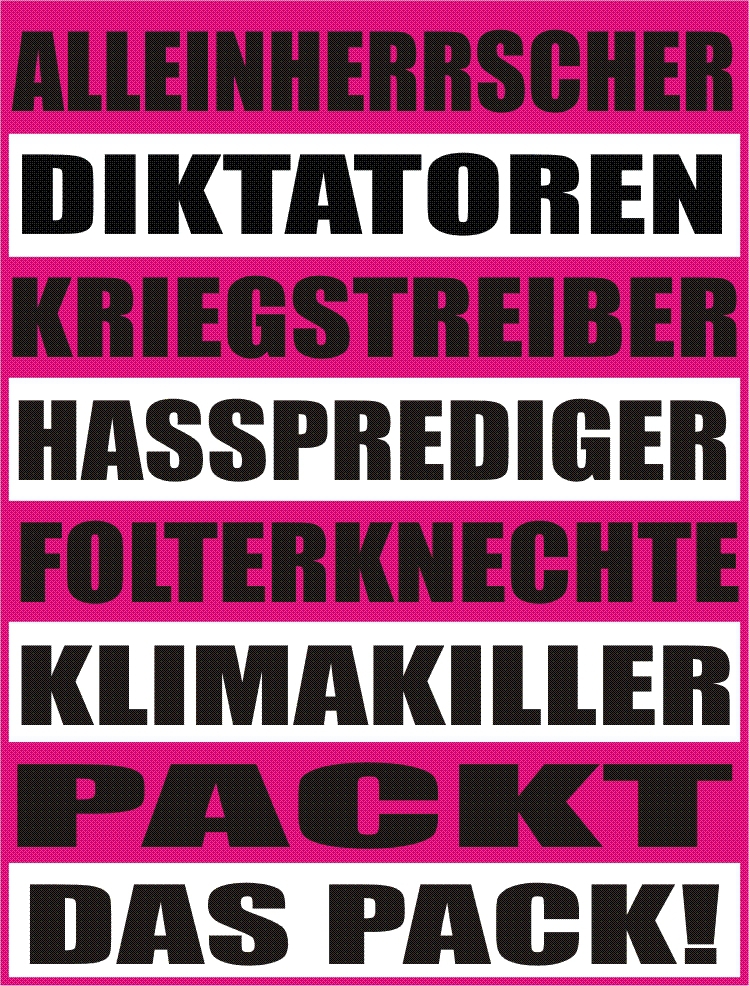 Diese Packung wiegt schwer, man muss sie anpacken, damit Pack Pack bleibt und ich als Mensch Mensch. Ich habe die Befürchtung, dass die PACKungen an Zahl und Volumen zunehmen, eine PACK-Adipösie förmlich, die Digitalisierung der Welt spielt dem PACK in die PACKung, PACKpakte werden geschlossen, PACK gesellt sich zu PACK, überall auf der Welt reinste PACKstationen, PACKeselherden, störrisch und unbelehrbar, so scheint es. Mehr denn je gilt: PACKT DAS PACK, immer und immer wieder wollen wir ihnen den PROZESS machen und das PACK wegpacken dorthin, wo es hingehört: hinter Schloss und Riegel.